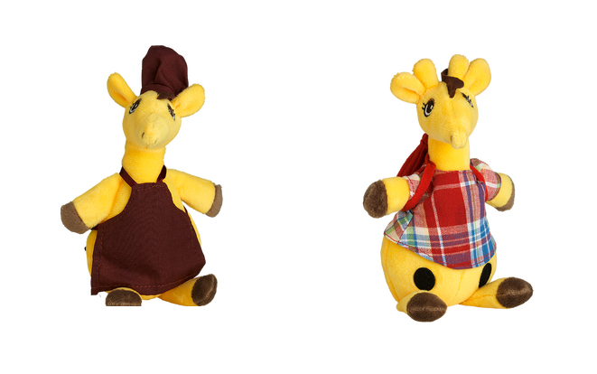 mit rotem Rucksack & kariertem Hemd, Schwänzchen-Ende angenäht, Rucksack am Rücken angenäht